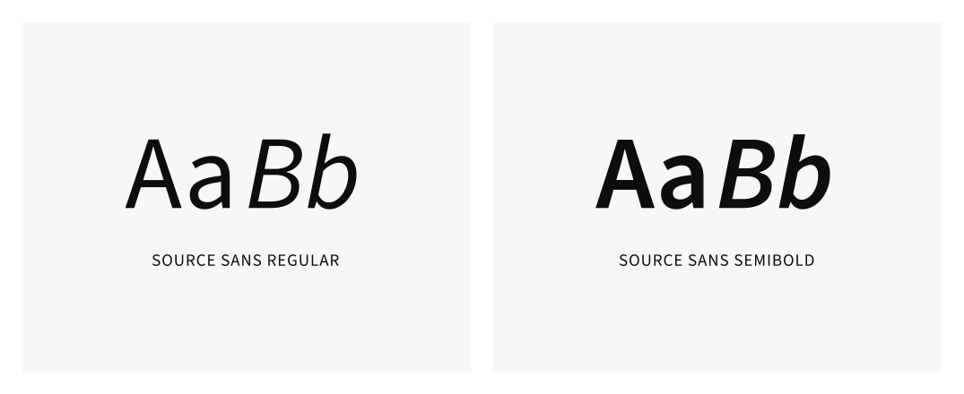 Source Sans Pro/3 er en «open-source» sans serif skrifttype, laget for å gi god lesbarhet på digitale produkter. I designsystemet bruker vi kun vektene Regular og Semibold, med tilhørende italics-versjoner.